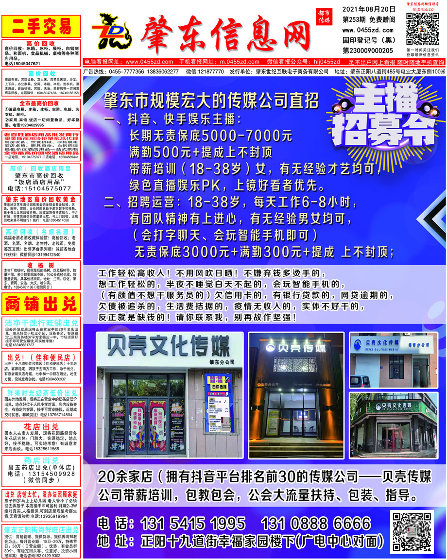 肇東信息網DM報紙2021年8月20日第253期