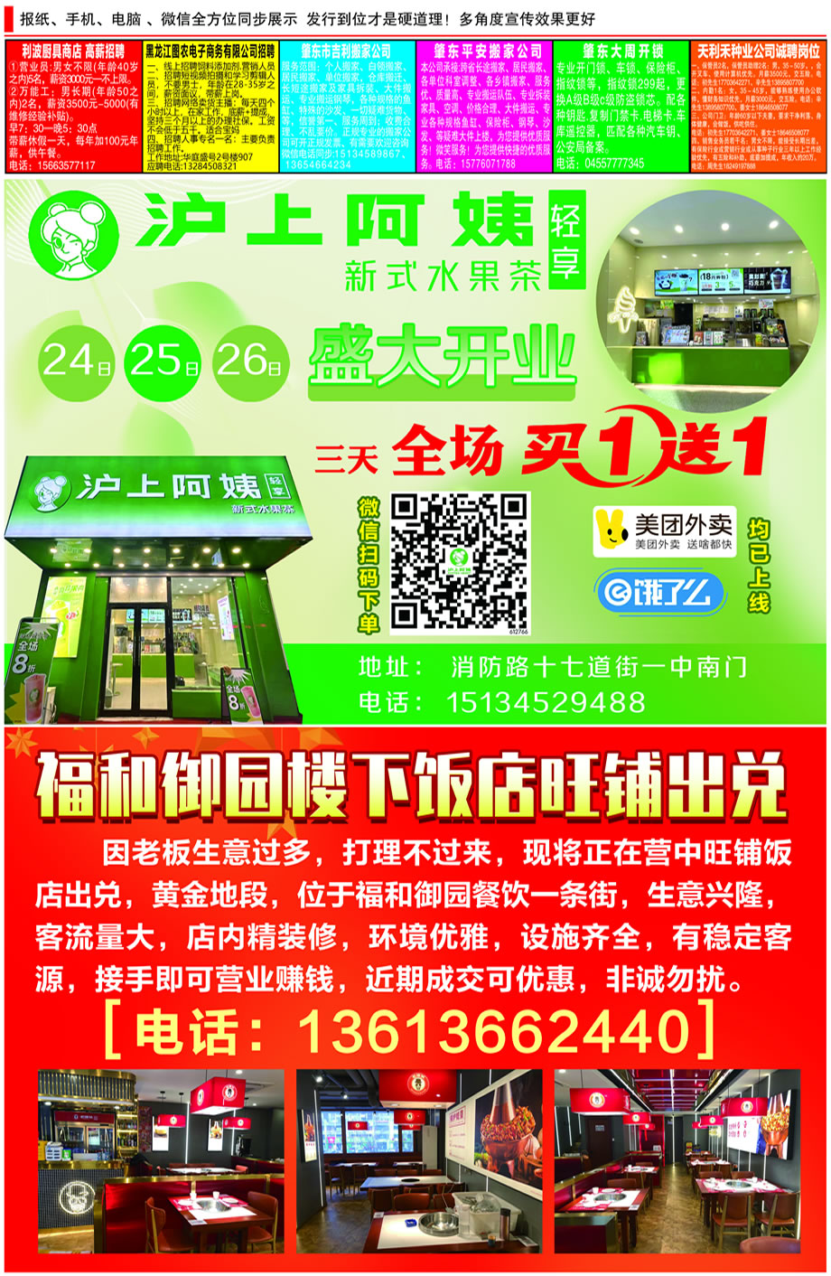 就在肇東老一中南門新開了一家 梨花田奶茶