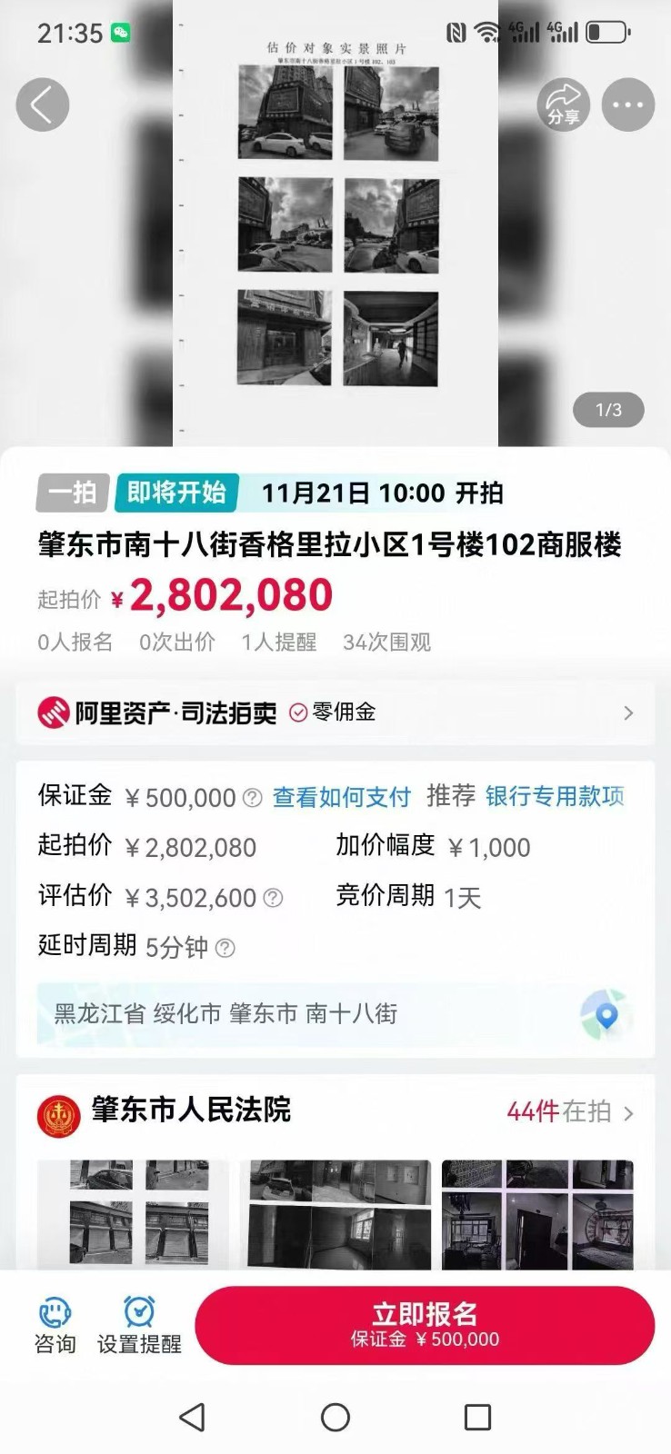 肇東香格里拉小區多套商服司法拍賣:拍賣時間:11月21 上午10點拍賣形式:淘寶、阿里資產(阿里拍賣)詳情以拍賣內容為準。