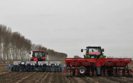 5月2日,肇東市海城鄉雙麗現代農機專業合作社的12行氣吸式精量播種機,正在長興村玉米大壟雙行地塊進行種肥同播分施作業,畝播種密度4500株,預計畝增產100公斤...