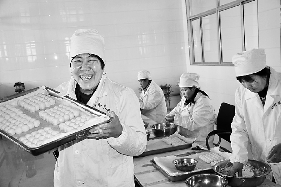 圖為里木店鎮(zhèn)裕村香谷物種植合作社正在手工生產(chǎn)的有機粘豆包!  拔覀兇鍙(fù)合社倡導(dǎo)有機肥取代化肥,人工除草代替除草劑,在綠色有機條件下種植的谷子,又瞄準(zhǔn)中高端市場...