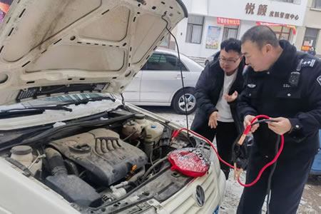 群眾車輛無法啟動,肇東警格員牽線搭“火”及時救援