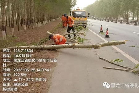 | 5月25日,我市迎來大風天氣,交通運輸局組織公路事業(yè)發(fā)展中心養(yǎng)護人員加大巡查力度,發(fā)現(xiàn)倒伏樹木,第一時間對公路進行安全管控,設置交通錐,疏導過往車輛,對倒伏樹木... |