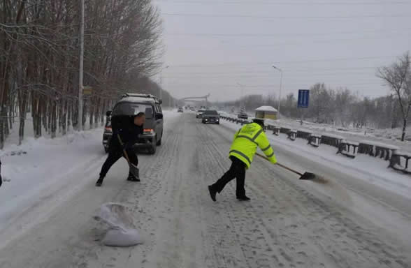 11月7日至今肇東轄區連續普降大雪風雪中執勤民警持續奮戰在路面一線護衛著群眾出行平安針對暴雪+凍雨+道路結冰狀況提醒廣大駕駛員謹慎慢行保持安全車距,注意行車安全...