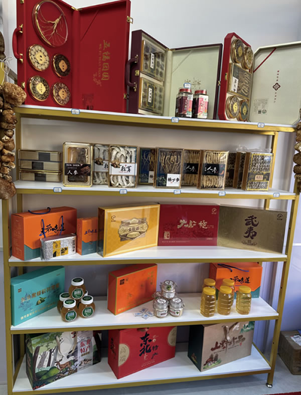 純東北椴樹雪蜜、五味子、枸杞、松茸、林下參、人參、鹿茸片、稻花香米、各種茶葉等應(yīng)有盡有。