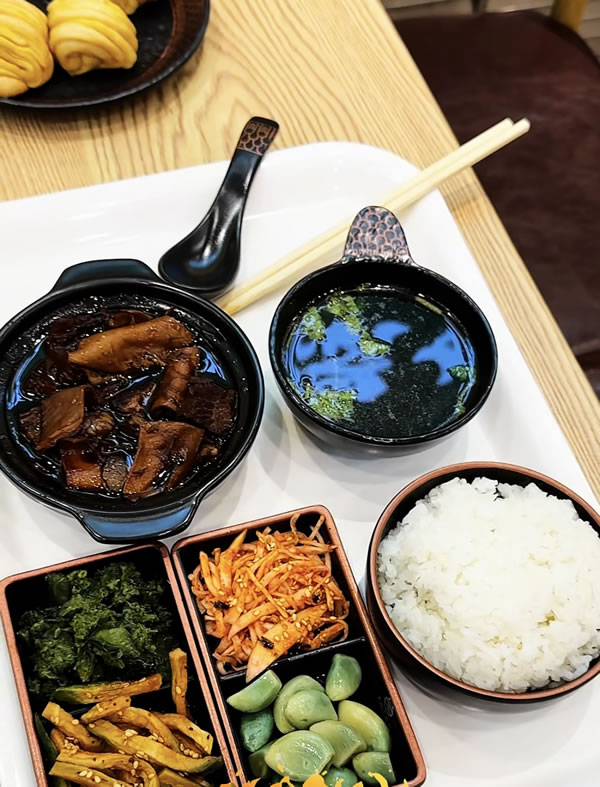 牛壇肉套餐只需19元 牛壇肉一份+牛肉湯+米飯+南瓜花卷+精品小咸菜 葷素搭配,精品小咸菜免費(fèi)續(xù)不限量。牛壇肉文火慢燉八小時(shí) 只為一碗好牛肉。