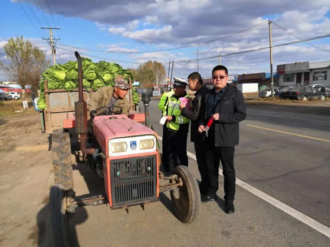 當(dāng)前正值秋收冬儲農(nóng)忙季節(jié),各類農(nóng)用車、拖拉機(jī)、農(nóng)用機(jī)械上路行駛增多,農(nóng)村地區(qū)道路交通安全隱患集中顯現(xiàn)。為進(jìn)一步加強(qiáng)農(nóng)村道路交通安全管理工作,有效預(yù)防和減少道路交通事故的發(fā)生,肇東交警大隊(duì)聯(lián)合市交通執(zhí)法大隊(duì)、農(nóng)業(yè)綜合執(zhí)法大隊(duì)開展聯(lián)勤聯(lián)治行動,緊盯城鄉(xiāng)結(jié)合部、農(nóng)村公路、鄉(xiāng)鎮(zhèn)出入口等重點(diǎn)路段,重點(diǎn)整治農(nóng)用車、拖拉機(jī)違法載人,無證無牌駕駛,酒后駕駛,面包車超員,不按規(guī)定粘貼反光標(biāo)識等交通違法行為,開展源頭隱患治理,確保農(nóng)村地區(qū)道路交通安全形勢平穩(wěn)有序。