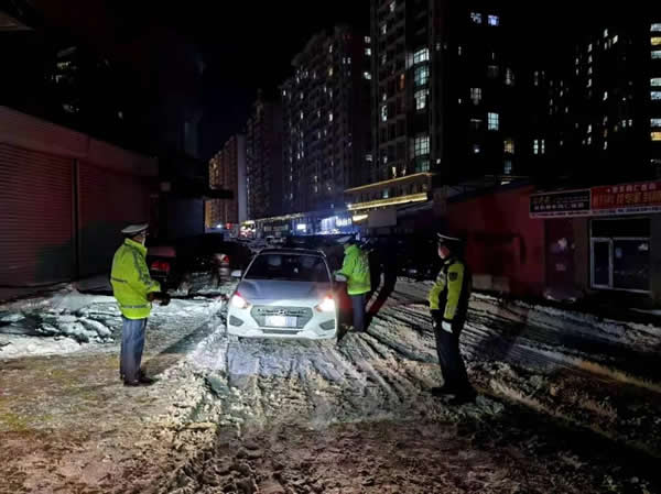 由于前一天全市普降大雪,道路結冰,酒駕等嚴重交通違法行為極易引發重大道路交通事故,交警大隊針對惡劣天氣的實際情況,采取定點設卡檢查和機動巡查相結合的勤務模式,將查處范圍向農村擴展覆蓋,巡警大隊和農村派出所通力配合,協同作戰。交警大隊大隊長帶領班子成員到執法一線靠前指揮,全體干警履職盡責,在全市轄區路網布置起了嚴查酒駕違法行為的“天網”。