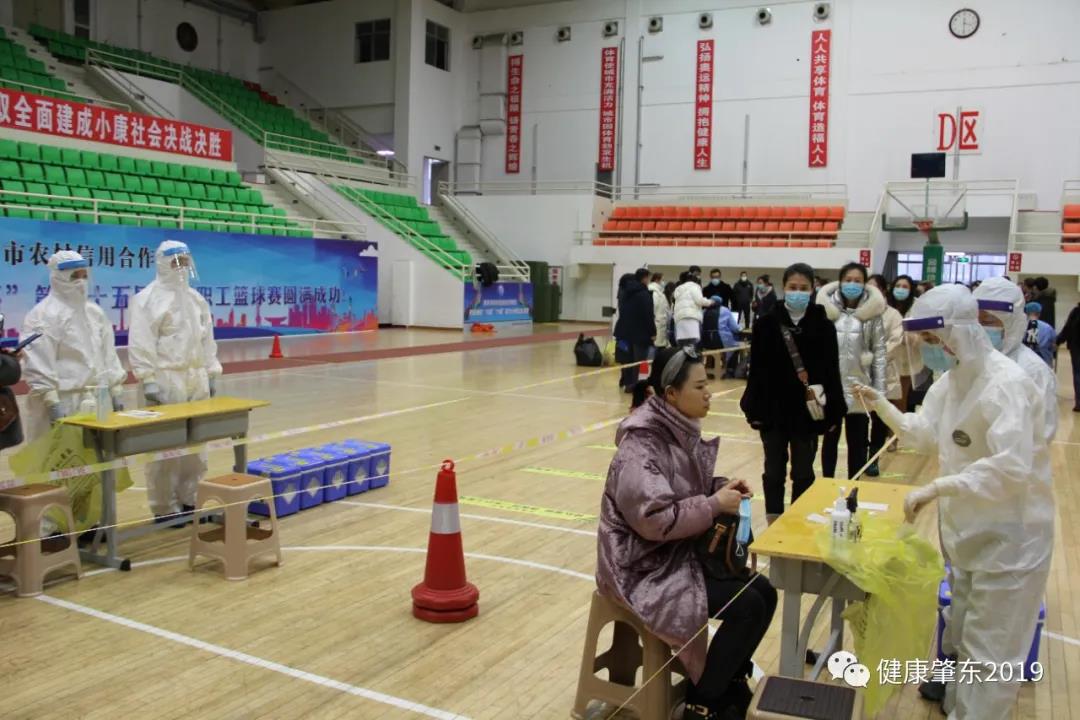 登記區(qū)運用信息化技術,使用電腦、身份證掃碼儀、掃碼槍進行身份登記和條碼識別,使登記環(huán)節(jié)的速度大大提高。采樣區(qū)按照1:10混采方式操作,每采樣一人按照七部洗手法進行消毒一次,一人采樣,一人收儲。兩組采樣隊通道使用隔離帶進行間隔,登記區(qū)與采樣區(qū)11米距離,中間用一米黃線間隔,居民在等候區(qū)綠色地標帶處等候,由民警站崗維持順序,等候區(qū)外的居民秩序由小社區(qū)干部佩戴疫情防控工作人員的紅色袖標站崗維持秩序。居民進入登記區(qū)后腳踏在黃色隔離帶上,保證間隔距離,進出兩個通道,現(xiàn)場秩序井然,當所有采集任務結(jié)束后,人民醫(yī)院和第一醫(yī)院的轉(zhuǎn)運人員分別把標本轉(zhuǎn)運箱送至等候在體育館外的本單位負壓救護車上,人員清場之后,疾控部門的消殺人員對現(xiàn)場進行了消殺處理,整個演練過程進行了2個小時。之后參加演練的單位召開會議,進行了總結(jié),對發(fā)現(xiàn)的問題提出了整改意見,為我市下步全員核酸采集起到了很好的示范作用。