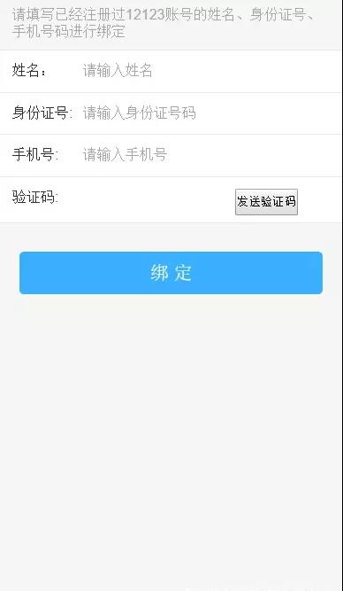 如沒有綁定直接跳轉(zhuǎn)到綁定頁面,輸入相關(guān)信息進(jìn)行綁定即可,沒有12123用戶直接注冊(cè)。