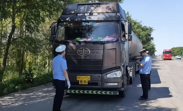 同時,執勤民警對危化品車輛駕駛人進行宣傳教育和交通安全提示,要求駕駛人加強對車輛的安全檢查和日常維護,嚴格遵守交通法規,按照限行時間和路線行車,提醒其當前進入夏季天氣炎熱,酷暑高溫,容易產生疲勞駕駛,一定要安全行車,確保自身及他人的生命財產安全。
