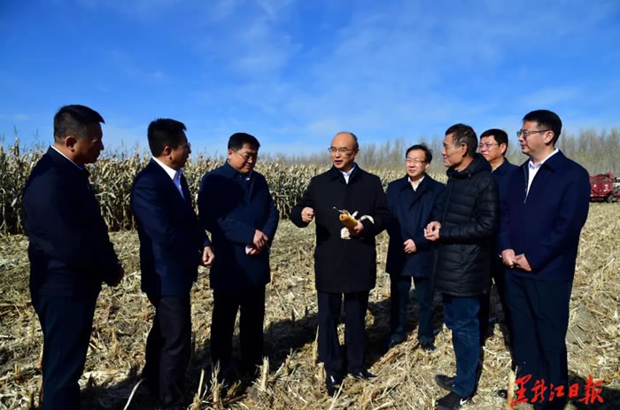 秋天的田野一派豐收景象。向陽鄉(xiāng)日新村秋收現(xiàn)場機械轟鳴,許勤健步走在剛剛收獲的地塊上,手拿玉米棒與農技人員細算增產增收賬,詳細了解品種、產量、成熟度、收獲進度等情況。他強調,今年又是一個豐收年,要抓住晴好天氣搶收,力爭10月25日之前完成收獲任務。要深化農業(yè)供給側結構性改革,調優(yōu)農業(yè)種植結構,引進培育高產量、高質量、高營養(yǎng)成分的新品種,發(fā)揮寒地、黑土優(yōu)勢,打造綠色有機、非轉基因、富硒等龍江特色農業(yè)品牌,發(fā)展科技農業(yè)、綠色農業(yè)、質量農業(yè)、品牌農業(yè),提高農業(yè)比較效益,促進持續(xù)穩(wěn)定增收。停在地頭的國產大型農業(yè)機械引起了許勤的濃厚興趣,他說,我省是裝備制造業(yè)基地,也是農業(yè)大省,發(fā)展農機裝備制造業(yè)大有可為,要加強研究謀劃,做好這篇大文章。