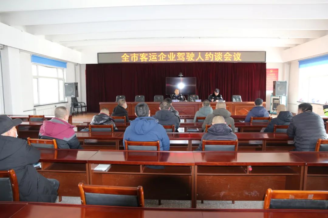 為認真貫徹落實市委、市政府、市交安委、市公安局工作部署,深刻汲取各地近期道路交通事故教訓,全面預防和減少道路交通事故,筑牢客運車輛道路交通安全防護網,2月21日,肇東公安交警大隊組織轄區重點客運企業負責人召開約談會,交警大隊副大隊長曲斌參加會議并提出工作要求,客運中隊中隊長葛海泉主持會議,客運企業負責人及部分駕駛員參加會議。