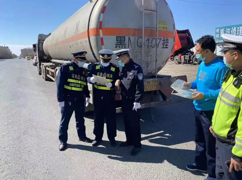 聯(lián)合執(zhí)法行動中,交通執(zhí)法大隊副大隊長刁大偉和交警大隊副大隊長曲斌帶隊,采取定點檢查與流動巡查相結(jié)合的方式,嚴(yán)查客車、貨車、危化品運輸車輛“三超一疲勞”、酒駕醉駕、違法改裝、超載超限等嚴(yán)重交通違法行為。形成嚴(yán)查、嚴(yán)管、嚴(yán)控的高壓態(tài)勢。執(zhí)法人員對重點車輛的外觀裝置、車輛輪胎,滅火器等安全設(shè)施配備情況,危化品運輸車緊急切斷裝置狀態(tài)等進(jìn)行全面檢查。同時仔細(xì)核查駕駛員和押運員檔案、駕駛資格、從業(yè)資格,交通違法記錄、車輛日常維護(hù)保養(yǎng)情況,提醒司機自覺遵守交通規(guī)則,切實提高安全文明行車意識和責(zé)任意識,全力預(yù)防和遏制重點運輸車輛重特大道路交通事故發(fā)生。