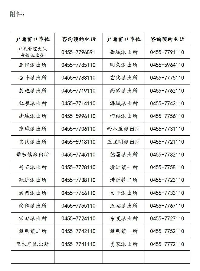 附件:公安機(jī)關(guān)戶籍窗口單位咨詢及預(yù)約電話
