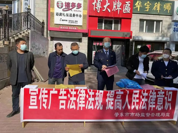 為增強廣大群眾對《廣告法》的認識,進一步提高廣大市民識別虛假廣告的能力,引導消費者理性消費,營造風清氣正的廣告市場環境,肇東市市場監督管理局廣告監督管理股根據省市局安排,開展了廣告法普法宣傳活動。