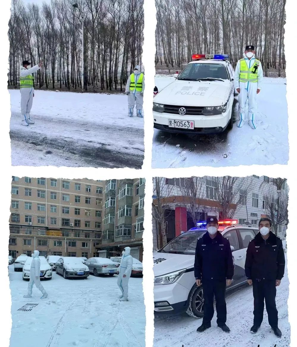 面對突如其來的惡劣天氣,肇東市公安局執勤民輔警頂風冒雪對相關車輛和人員耐心地宣傳疫情防控有關規定,在嚴厲打擊涉疫違法犯罪的同時,不斷強化文明、理性、柔性執法,讓群眾切實感受到公安機關執法的溫度,贏得了肇東百姓的支持和認可。在疫情防控卡點,執勤民輔警們依舊是一絲不茍,克服天氣寒冷等不利因素,對進入城區的車輛和司乘人員嚴格按照防控工作要求,做好人員和車輛信息登記,嚴防疫源攜入。交警大隊執勤民輔警冒雪堅守各執勤崗,嚴格執行疫情防控期間交通管控措施。各城鄉派出所執勤民輔警認真執行疫情防控任務,冒雪堅守崗位開展執勤管控工作,全力奮戰在疫情防控一線,確保疫情防控工作有序開展。自疫情臨時管控以來,肇東公安民輔警“逆行”而上,勇敢的奮戰在防控一線,彰顯了無私奉獻的精神和義無反顧的擔當,用實際行動全力守護著人民群眾的平安。