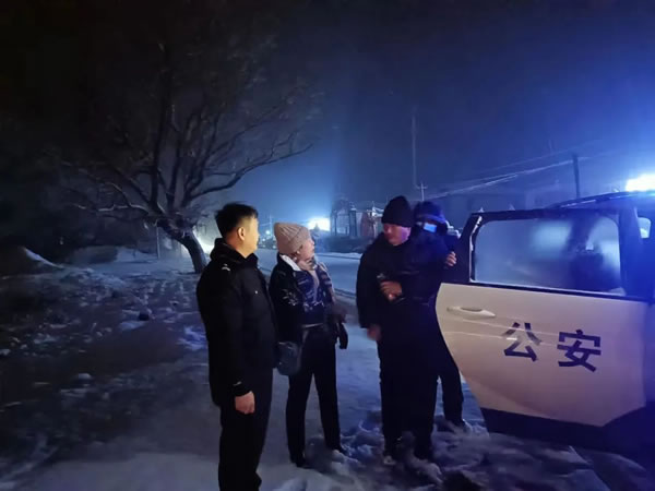 3月14日晚9時(shí)許,天空飄著鵝毛般的大雪,安民派出所接到群眾報(bào)警稱:“在安民鄉(xiāng)安民村李家圍子屯,301國(guó)道東側(cè),有一名頭戴黑色帽子,身穿黑色棉服和黑色褲子的男子,不知道什么原因躺在路邊”,接到報(bào)警后,民警楊忠孝立即帶領(lǐng)輔警張興宇趕赴報(bào)警現(xiàn)場(chǎng),經(jīng)過(guò)現(xiàn)場(chǎng)了解,發(fā)現(xiàn)該人為智障人員,無(wú)法準(zhǔn)確有效地表達(dá)個(gè)人信息,且身上也沒有任何能證明身份信息的證件,具體住址也說(shuō)不清楚。只能斷斷續(xù)續(xù)的表達(dá)自己和母親的名字,但無(wú)法提供聯(lián)系方式,經(jīng)過(guò)民警再三溝通,他說(shuō)是在廣場(chǎng)上扭秧歌,扭完后想回家,在經(jīng)過(guò)一個(gè)天橋后,迷失了方向,就走到這來(lái)了。民警楊忠孝分析,該人應(yīng)該是從市區(qū)來(lái)的,因?yàn)樗岬教鞓颍裁袼爡^(qū)最近的城市就是安達(dá)市,他應(yīng)該是從安達(dá)市方向來(lái)的,將群眾領(lǐng)到安民派出所后,輔警張興宇為他買了熱乎的食物并安撫其情緒,通過(guò)工作得知該人叫郭某東是安達(dá)市朝陽(yáng)區(qū)居民,楊忠孝立即與安達(dá)市朝陽(yáng)派出所取得聯(lián)系,安達(dá)市朝陽(yáng)派出所工作人員表示,郭某東的父母已向派出所報(bào)警,說(shuō)孩子已走失一下午了,父母很著急,我們這邊也出動(dòng)警力正在幫忙尋找,民警楊忠孝與他的父母取得聯(lián)系后,告知人已安全找到,看著天空飄下的大雪,楊忠孝決定和張興宇用警車把郭某東安全送回家里,以免發(fā)生其他意外。