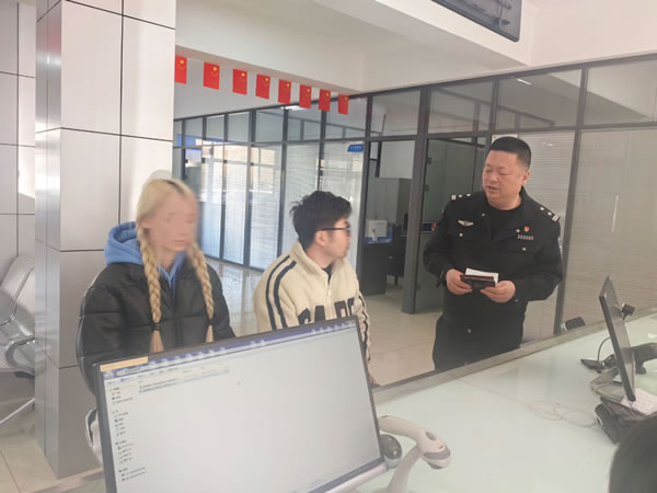 3月27日,肇東市公安局出入境管理大廳迎來了一對神情焦急的夫婦尋求幫助,肇東居民姜先生攜外籍妻子趕到出入境接待大廳咨詢辦理外國人簽證的相關問題,工作人員詢問得知,姜先生與妻子卡琳娜因工作原因長期居住在浙江省金華市,由于妻子卡琳娜簽證問題夫妻二人輾轉千里回肇東辦理簽證,民警秉承“群眾利益無小事、為民服務無終點”的理念,在審核基礎資料后,協助兩人僅用半小時就成功辦理了簽證,解決了群眾的實際困難,提高了群眾的獲得感、幸福感、安全感。