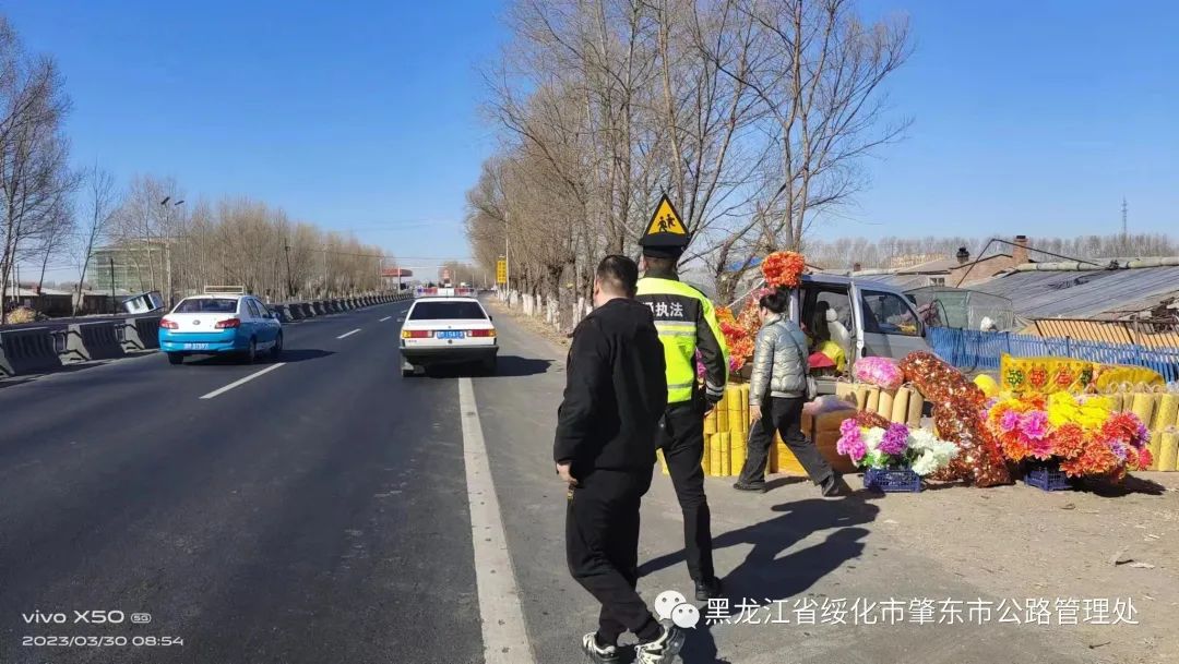 截至目前,共出動執(zhí)法人員105人次,執(zhí)法車輛20余臺次,拆除違法搭建2處、非公路標(biāo)志11塊,取締非法占道經(jīng)營28處,清除違法堆放9處。