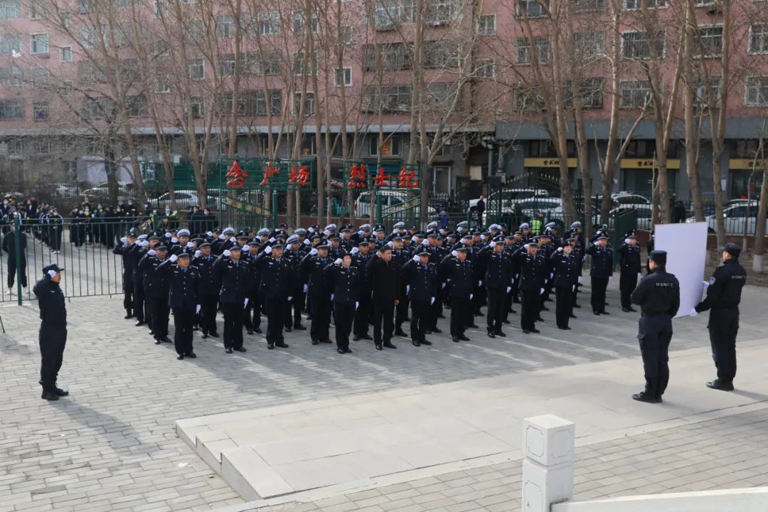 局班子成員帶領全體民輔警面向紀念碑,重溫入警誓詞。