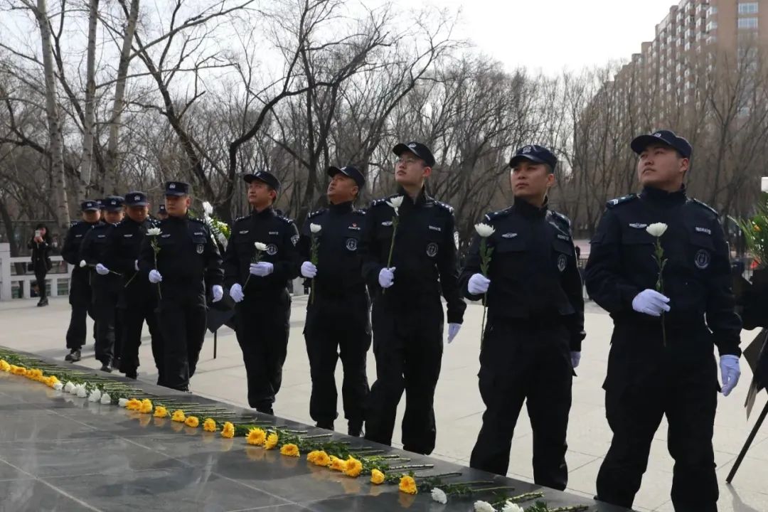 參加祭奠活動的全體民輔警懷著濃濃的哀思和崇高的敬意,整齊列隊,來到英雄紀念碑前向英烈紀念碑敬獻了花圈和鮮花,全體民輔警肅立默哀,表達對英雄們無限的崇敬和深切的緬懷之情。
