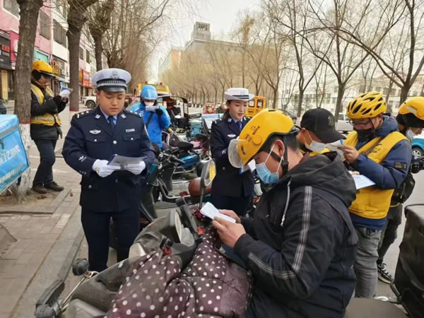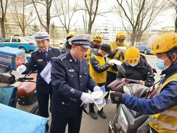 在快遞外賣企業及人員聚集場所,民警以發放宣傳資料、粘貼《黑龍江省電動車管理條例》宣傳單等方式,詳細講解電動車的種類、認定標準、電動車登記程序等通行規定。提醒廣大群眾在騎乘電動車時要正確佩戴合格的安全頭盔,杜絕闖紅燈、逆向行駛、酒后駕駛等各類交通違法行為。引領廣大群眾遵守電動車通行規定,摒棄交通陋習,做到守法規知禮讓,安全文明出行。
