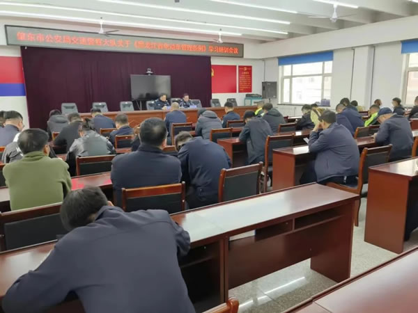 為進一步落實《黑龍江省電動車管理條例》,規范電動車登記及領取通行識別碼工作,逐步凈化道路交通環境。4月19日下午,肇東市公安交警大隊組織轄區中隊、各鄉鎮派出所及檢測站召開《黑龍江省電動車管理條例》學習培訓會議。會議由教導員李海濤主持" />
