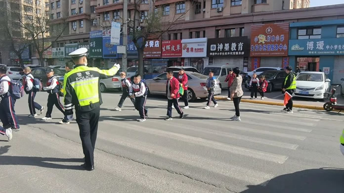 為深入推進道路交通安全整治年工作,確保學生出行安全,綏化市公安局交通警察支隊肇東大隊持續推進護學行動,充分發揮“護學崗”“高峰勤務”等護學機制作用,積極推廣“校家警”護學模式,以民輔警為主,交通志愿者為輔,學校教職員工、學生家長聯動,共同維護校園周邊交通安全秩序。