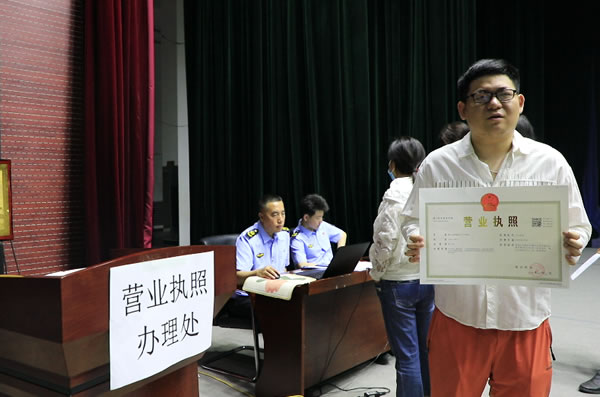 針對個體工商戶需要紙質(zhì)營業(yè)執(zhí)照的要求,立即將紙質(zhì)營業(yè)執(zhí)照打印送到小餅節(jié)個體經(jīng)營者手中,做到現(xiàn)場秒申請,大廳秒審批。
