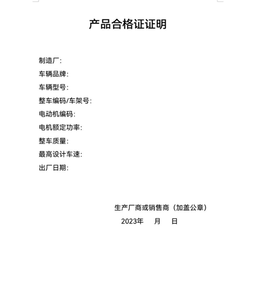 1、電動車合格證