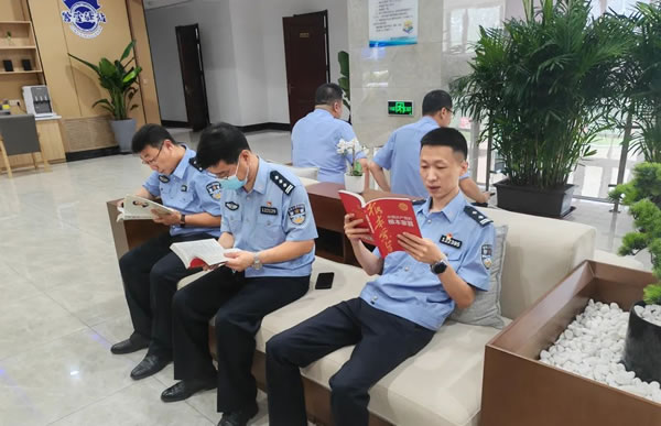 肇東市公安局警營驛站,整齊的書架、蔥郁的綠植、溫馨的環境,民警輔警置身其間,誦讀、交流、分享,收獲了知識,激發了活力,讓民輔警真正做到手機放下半小時,精讀理論30分。