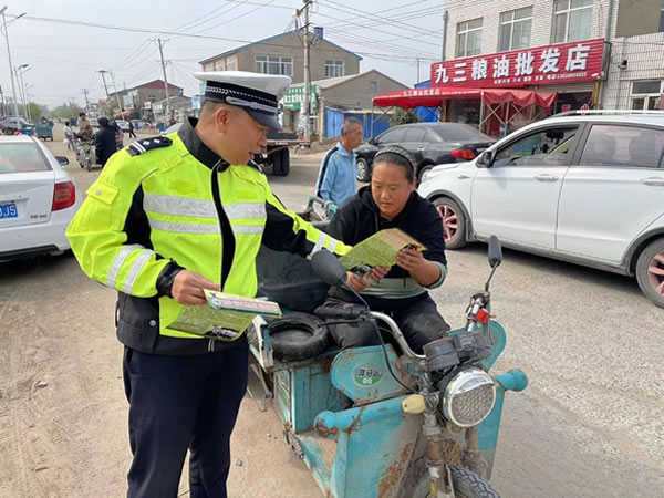 大隊民輔警以高度負責的工作態度,走進各鄉鎮村屯,在村干部的積極支持下,包保民輔警挨家挨戶登記機小型客車、低速載貨汽車、農用車等機動車輛及駕駛人信息。為群眾發放《秋收道路交通安全須知》、《一盔一帶》、《遠離酒駕、平安出行》等宣傳資料,面對面宣講法律法規和安全常識,解釋農民朋友提出的疑問,解決實際存在的問題。對農村秋收使用的四輪車、農用機械等車輛進行檢查,對反光標識缺失、失效的車輛,當場免費為其粘貼。通過零距離接觸、心貼心交流,直接拉近了警民關系,為保秋收、壓事故打下良好基礎。
