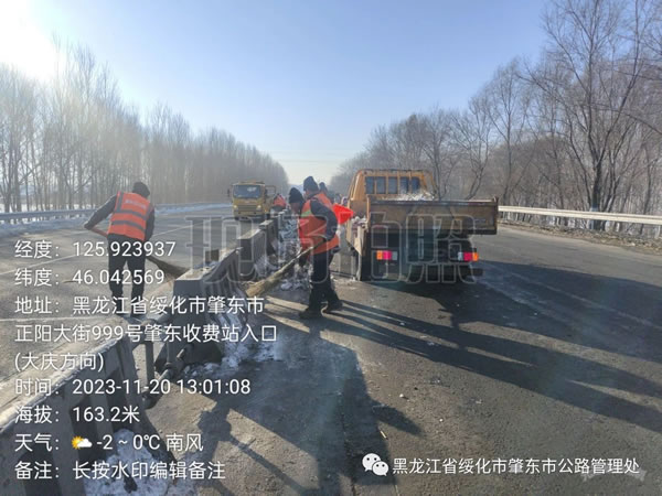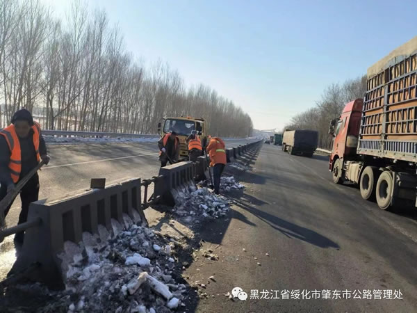 近日,公路事業發展中心組織養護人員加緊清理清雪機械作業盲區存在的殘冰、殘雪,徹底消除公路安全隱患,為群眾安全出行保駕護航。