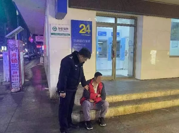 2月15日(農歷初六)的傍晚18時許,正陽派出所的輔警魏巍正在十四道街上執行巡邏任務。當他們巡邏至中國建設銀行門前時,注意到一名男子獨自坐在臺階上,神情恍惚,似乎陷入了沉睡。憑借工作經驗魏巍立即判斷這名男子可能酒喝多了。民警輕輕地走" />