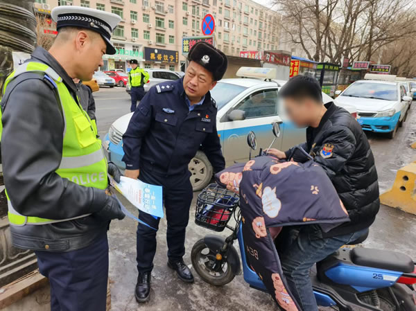 行動之初,首先營造強大的宣傳聲勢。通過傳統媒體和新媒體以及張貼標語、海報、樹立展板、發放宣傳單等多種方式,高頻次、大范圍、多途徑進行宣傳,并充分利用車管所、電動自行車登記上牌點、交通違法和事故處理窗口、執勤執法站點等交管宣傳陣地,常態化開展宣傳,將“一盔一帶安全常在”理念深植于民眾內心。