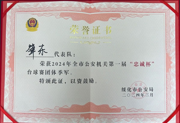 肇東市公安局在綏化市公安局第一屆“忠誠”杯臺球比賽暫獲佳績
