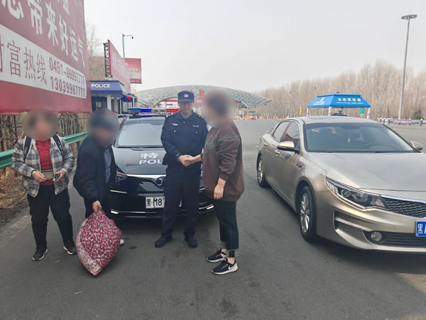 隨后,巡特警隊員將走失人員董某送到哈大高速哈爾濱收費站出口處,董某與家屬團聚,家屬看到董某被肇東警察找到了,激動的握著巡特警隊員的手連連道謝。