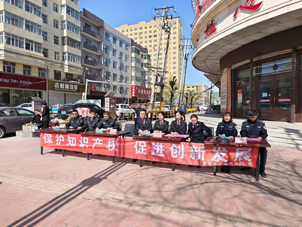 4月26日上午,在第24個“世界知識產權日”到來之際,肇東市公安局食藥環偵大隊聯合市場監督管理局、司法局、人民檢察院在肇東市四道街兄弟家電城門前開展“知識產權轉化應用、促進高質量發展”為主題的普法宣傳活動,進一步提升全民知識產權的保" />