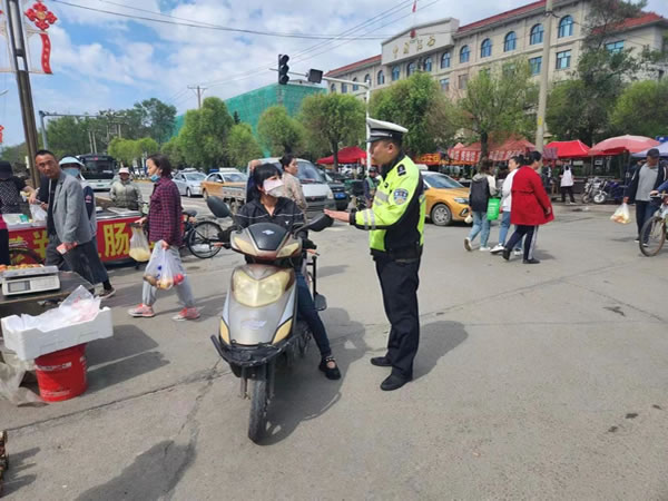 行動過程中,城鎮中隊民輔警在城區電動車易集中路段,尤其是農貿市場、商圈、車站等重點區域,采取定點檢查和巡邏管控的方式,對電動車逐輛進行檢查,對未正確佩戴安全頭盔的騎乘人員,現場講解正確佩戴頭盔的方法及佩戴頭盔的重要性和必要性。對未佩戴安全頭盔的騎乘人員進行教育、警告。采取以教育為主的原則,當面宣講交通安全法律法規等安全知識,詳細剖析駕乘電動車不佩戴安全頭盔的嚴重危害和后果。告誡駕駛人騎行時不要隨意穿插掉頭、逆向行駛、超速行駛、酒后駕駛,不要亂停亂放,要做遵章守法、文明駕駛的帶頭人。