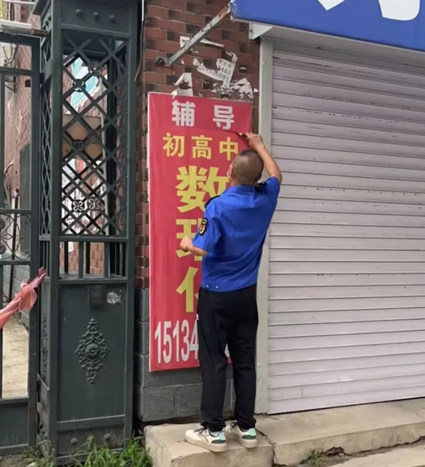 在檢查中,檢查組發現一家機構墻板有學科類字樣,當即下發限期整改通知書,要求立行立改;同時,對2家懸掛違規牌匾的機構,綜合執法局工作人員予以了當即拆除。