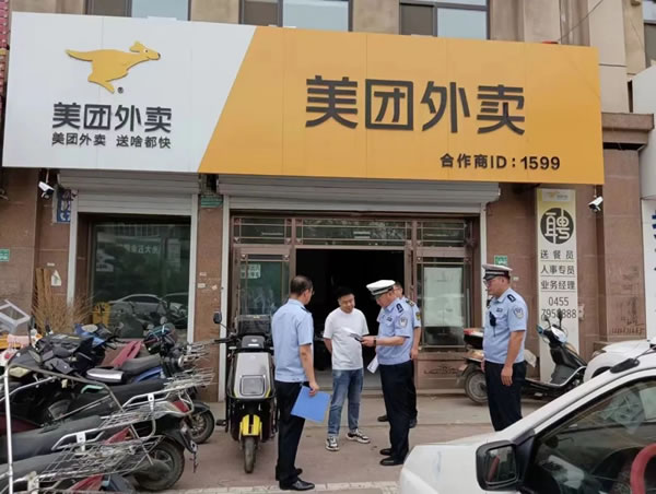 肇東市市場監(jiān)管局會同市公安局交警大隊組織開展即時配送企業(yè)電動自行車使用情況檢查