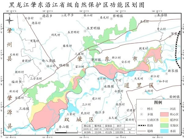 一、肇東沿江省級自然保護區位于松花江北岸,東部與哈爾濱市松北區接壤,南部與哈爾濱市雙城區、道里區相鄰,西部與肇源縣交界,北部位于五站鎮孫矮屯以南1.3公里處,總面積為32217.58公頃。轄區涉及西八里、四站、澇洲、五里明、黎明、五站、德昌和東發辦事處8個鄉鎮(辦事處)的部分土地。