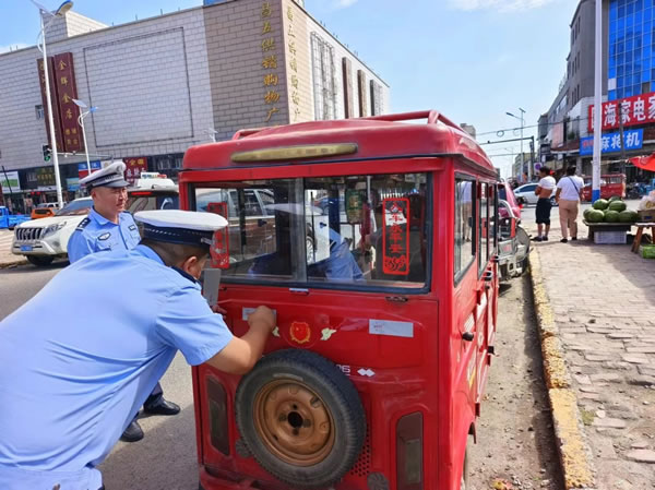 同時,為沒有粘貼反光標識和反光標識殘缺、陳舊的農用車輛、三輪車等免費粘貼安全反光標識,提升車輛夜間通行安全系數,為農民朋友駕車出行提供安全保證,筑牢道路交通安全防線。