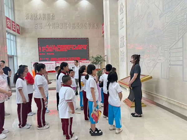 活動當日,陽光明媚,在“愛心媽媽”的陪伴下,肇東市新立小學的學生們滿懷好奇與期待踏入法院的大門。在解說員的引導下,大家有序參觀了訴訟服務中心、科技法庭、羈押室等場所,直觀感受到司法便民的舉措。走進莊嚴的審判法庭,看到高懸的國徽、威嚴的法臺,同學們深刻體會到法律的神圣與莊重。觸摸法槌、親身體驗法官、檢察官、辯護人等角色,讓大家興奮不已,也對司法工作有了更直觀的認識。在參觀過程中,“愛心媽媽”們始終陪伴在同學們身邊,細心地提醒大家注意安全,輕聲解答同學們的疑問,眼神中滿是關切與愛護。