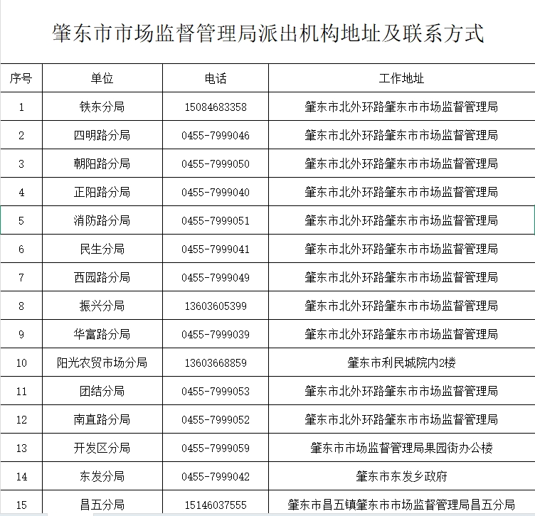 關于肇東市市場監督管理局派出機構地址及聯系方式的公告