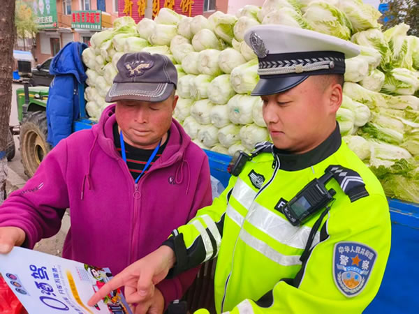 針對(duì)秋菜運(yùn)輸車(chē)輛多為農(nóng)用車(chē)型、駕駛員交通安全意識(shí)相對(duì)薄弱的特點(diǎn),交管民警們還化身“流動(dòng)宣傳員”。在臨時(shí)停靠點(diǎn),他們會(huì)主動(dòng)遞上交通安全手冊(cè),用通俗易懂的語(yǔ)言講解“不超載、不搶道、不疲勞駕駛”等注意事項(xiàng);看到有的農(nóng)用車(chē)輛反光標(biāo)識(shí)陳舊或破損,便及時(shí)給予補(bǔ)充粘貼,并不厭其煩地講解反光貼的重要作用。一句句樸實(shí)的叮囑,讓農(nóng)戶(hù)們感受到實(shí)實(shí)在在的關(guān)懷。