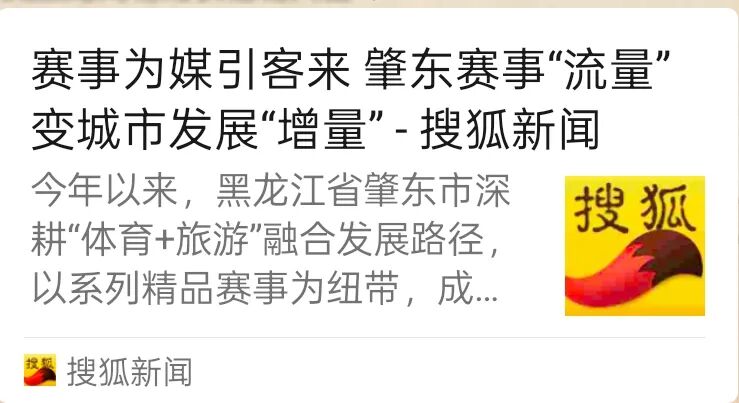 近日,肇東市以系列精品賽事為核心的文體旅融合發(fā)展模式引發(fā)多家媒體集中關(guān)注,今日頭條、騰訊新聞、搜狐新聞、百度、市場(chǎng)信息報(bào)信息快訊等多家媒體相繼聚焦其賽事經(jīng)濟(jì)成效進(jìn)行專(zhuān)題報(bào)道,讓肇東“以賽促游、以游興城”的發(fā)展故事成為矚目焦點(diǎn),賽事經(jīng)濟(jì)成為城市的新名片。