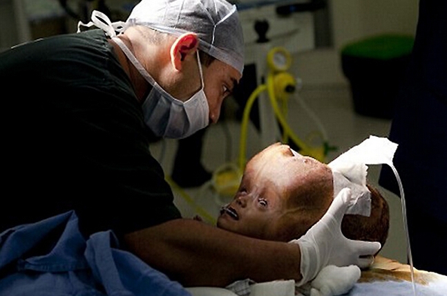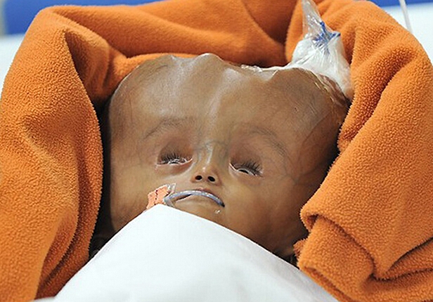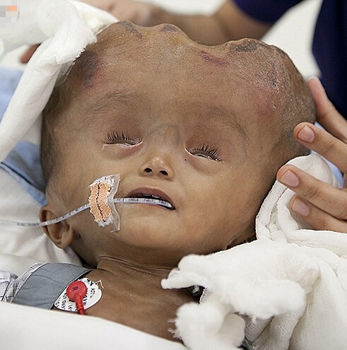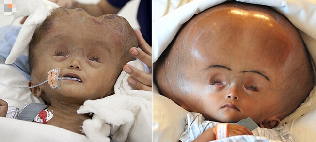 印度患腦積水女嬰手術后頭圍縮小 術前如外星人(1)