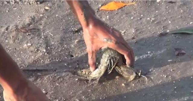 男子在海邊發現兩個大小不一的洞,最后抓出來的東西小伙伴驚呆了